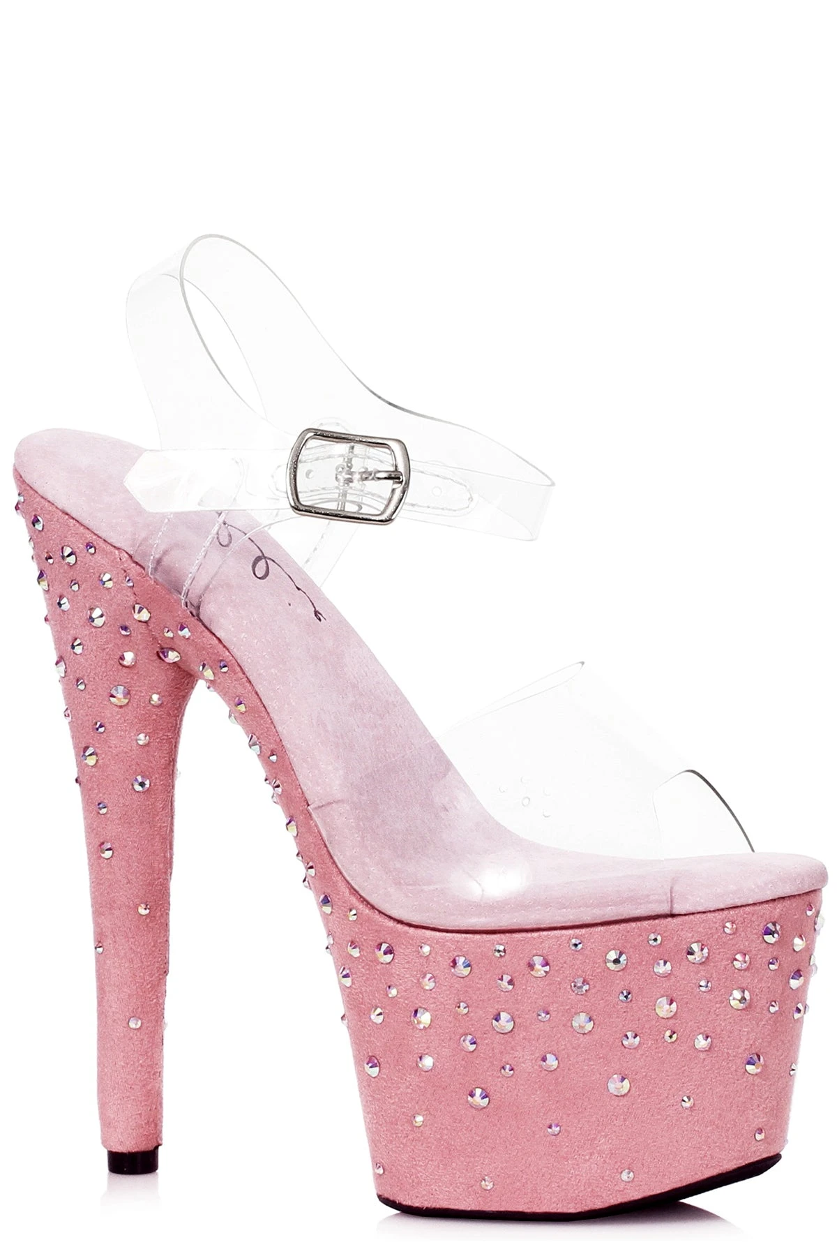 7″ microfiber platform heel shoes with rhinestones.